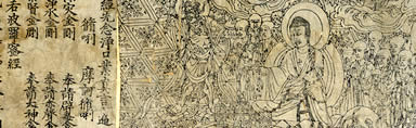 Today in 868, The Diamond Sutra was published in China. The copy in the British Library is “the world’s earliest complete survival of a dated printed book.” The printed scroll was one of 40,000 other books and manuscripts hidden in a cave near the city of Dunhuang. The secret library was sealed up around the year 1000, a time when this desert outpost of China was threatened by the ambitions of the Hsi-Hsia kingdom to the north. The cave is part of a holy site known as the ‘Caves of a Thousand Buddhas’ – a cliff wall honeycombed with 492 grottoes cut from the rock from the 4th century onwards and decorated with religious carvings and paintings. A monk discovered the sealed entrance to the hidden cave in 1900. Inside, the scrolls of paper and silk had been perfectly preserved by the dry desert air. The British Library’s copy of the Diamond Sutra was found by the explorer Sir Marc Aurel Stein in 1907. It is has been digitized as part of the The International Dunhuang Project, “a ground-breaking international collaboration to make information and images of all manuscripts, paintings, textiles and artefacts from Dunhuang and archaeological sites of the Eastern Silk Road freely available on the Internet and to encourage their use through educational and research programmes.”