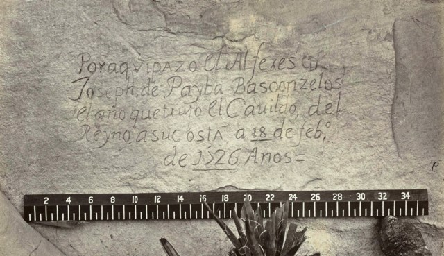 The Atlantic: “Nearly 150 years ago, photographer [Timothy] O’Sullivan came across this evidence of a visitor to the West that preceded his own expedition by another 150 years — A Spanish inscription from 1726. This close-up view of the inscription carved in the sandstone at Inscription Rock (El Morro National Monument), New Mexico reads, in English: ‘By this place passed Ensign Don Joseph de Payba Basconzelos, in the year in which he held the Council of the Kingdom at his expense, on the 18th of February, in the year 1726.'”